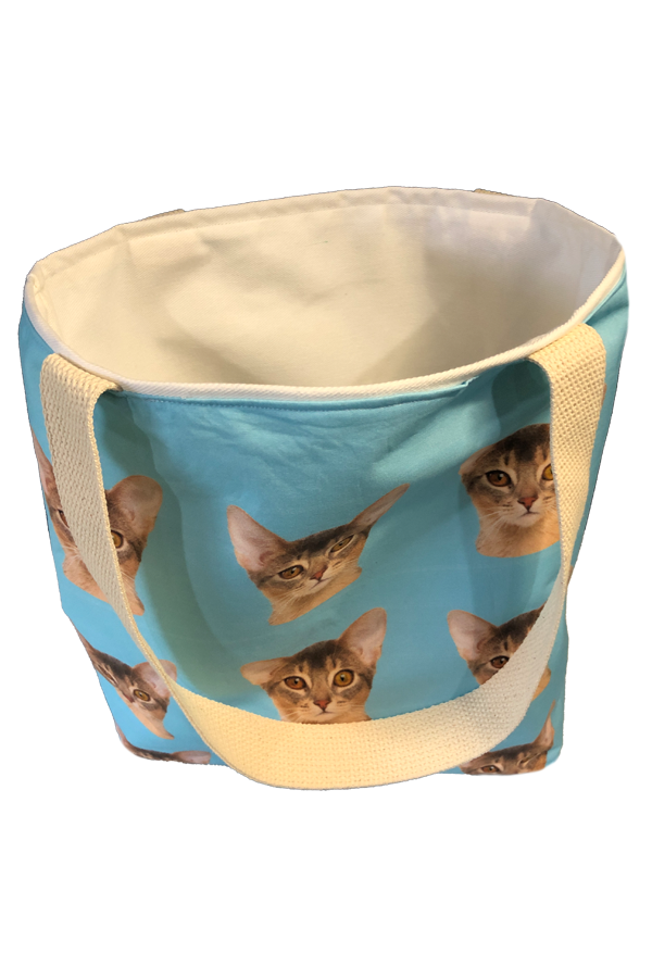 The fabric showcases a variety of adorable cat illustrations in playful and relaxed poses, artfully rendered to capture the unique personalities of our beloved feline friends. The print’s vibrant colors and intricate details make this tote a standout accessory, sure to turn heads wherever you go. The interior of This Handmade Designer Abyssinian Blue Tote Bag is lined with heavy cotton twill, providing a robust and durable foundation that maintains the bag’s shape and integrity. This high-quality lining not only adds to the bag’s durability but also offers a soft, luxurious feel, ensuring your belongings are well-protected.