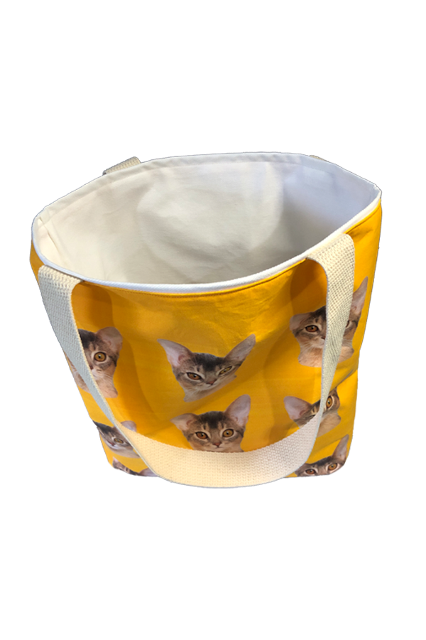 The fabric showcases a variety of adorable cat illustrations in playful and relaxed poses, artfully rendered to capture the unique personalities of our beloved feline friends. The print’s vibrant colors and intricate details make this tote a standout accessory, sure to turn heads wherever you go. The interior of This Handmade Designer Abyssinian Orange Tote Bag is lined with heavy cotton twill, providing a robust and durable foundation that maintains the bag’s shape and integrity. This high-quality lining not only adds to the bag’s durability but also offers a soft, luxurious feel, ensuring your belongings are well-protected.