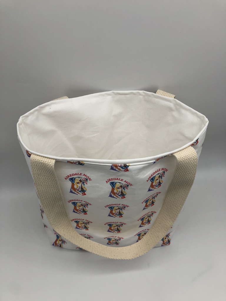 Introducing the epitome of canine elegance and artisan craftsmanship: the Handmade Designer Airedale Mom Tote Bag. Standing proud at 14 inches tall and stretching 16 inches wide, this exquisite accessory is a tribute to functionality and style. Crafted with meticulous attention to detail, it will become your wardrobe’s darling. At first glance, your eyes are immediately drawn to the captivating design gracing the tote’s exterior. Your pet is displayed in a beautiful scene on a durable fabric. The playful demeanor brings a touch of whimsy to the bag, making it a conversation starter wherever you go.