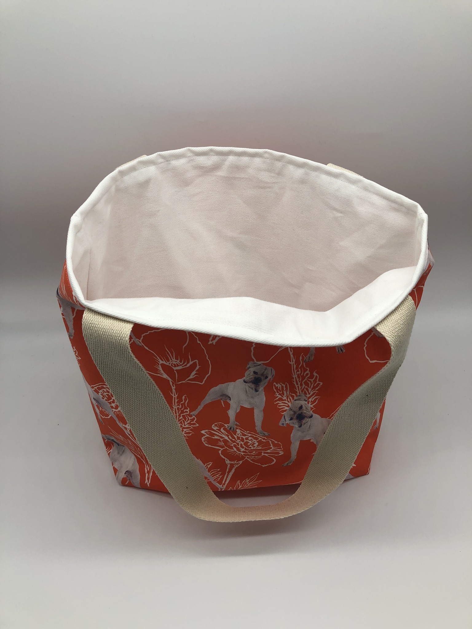 This American Bulldog #1B Tote Bag is handmade with American Bulldog-themed designer fabric and is lined with white cotton twill. At Beau Designs, I create hand-detailed products with natural tones, organic textures, and high-end materials. Another product that would complement this American Bulldog #1B Tote Bag is the American Bulldog #1 Squirrel Scarf. Click here to visit my Etsy store.