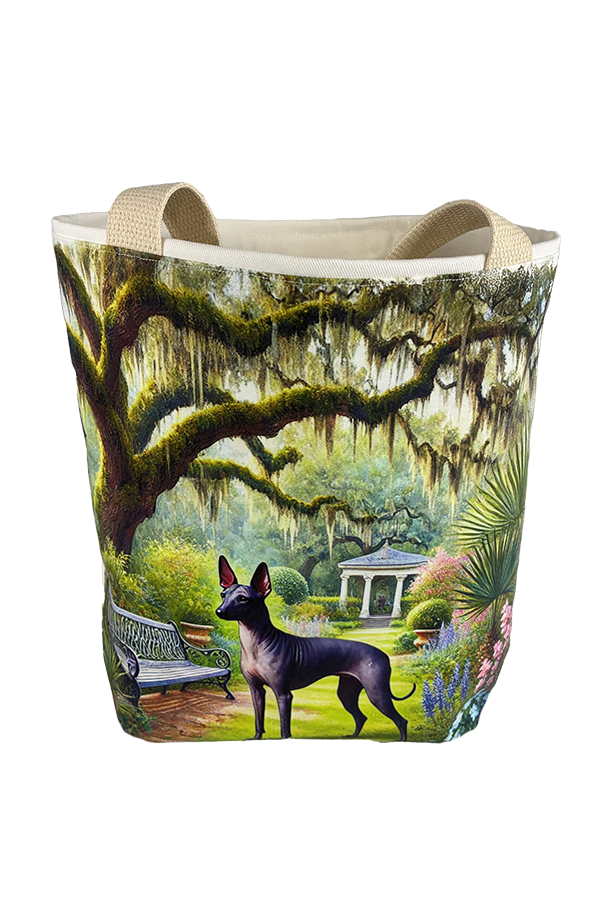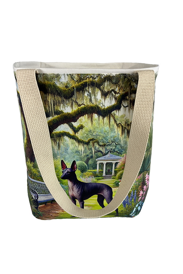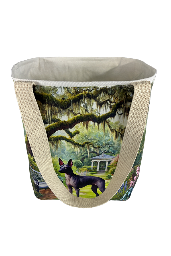 Introducing the epitome of canine elegance and artisan craftsmanship: the Handmade Designer American Hairless/Grey Garden Tote Bag. Standing proud at 14 inches tall and stretching 16 inches wide, this exquisite accessory is a tribute to functionality and style. Crafted with meticulous attention to detail, it will become your wardrobe’s darling. At first glance, your eyes are immediately drawn to the captivating design gracing the tote’s exterior. Your pet is displayed in a beautiful scene with personality and charm. Their playful demeanor brings a touch of whimsy to the bag, making it a conversation starter wherever you go.