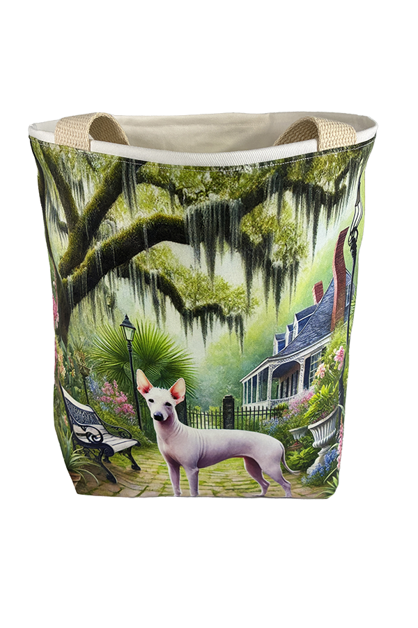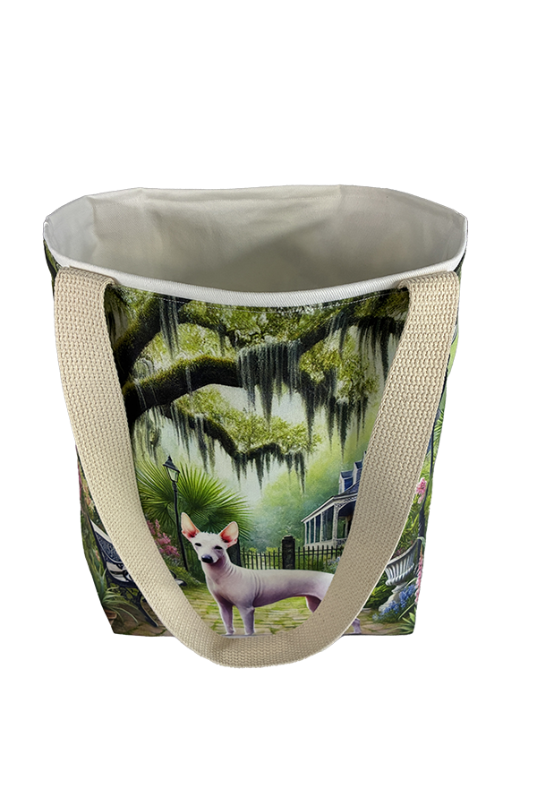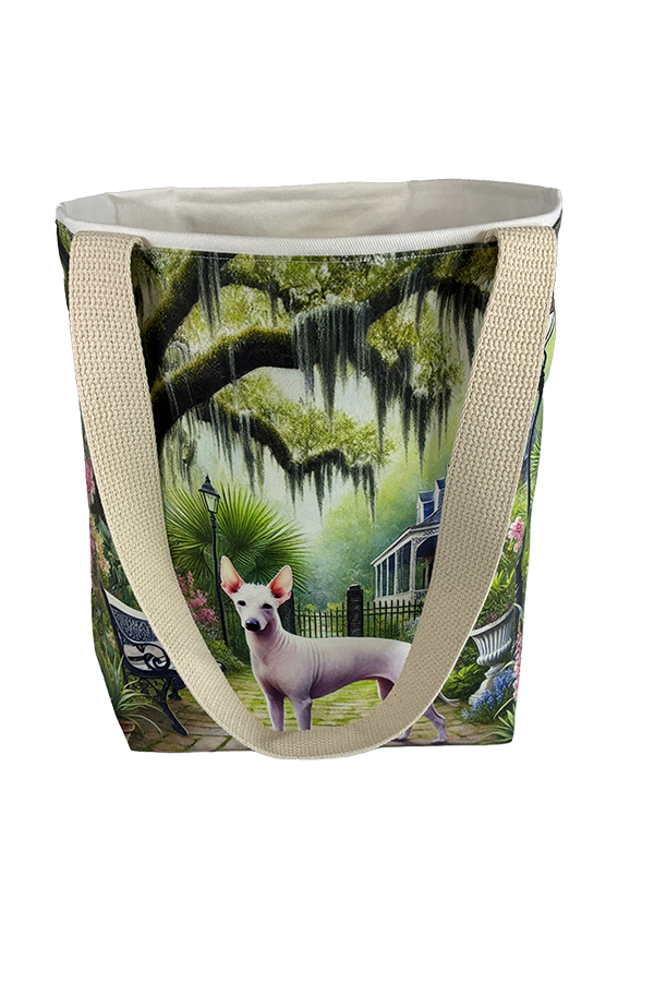 Introducing the epitome of canine elegance and artisan craftsmanship: the Handmade Designer American Hairless/White Garden Tote Bag. Standing proud at 14 inches tall and stretching 16 inches wide, this exquisite accessory is a tribute to functionality and style. Crafted with meticulous attention to detail, it will become your wardrobe’s darling. At first glance, your eyes are immediately drawn to the captivating design gracing the tote’s exterior. Your pet is displayed in a beautiful scene with personality and charm. Their playful demeanor brings a touch of whimsy to the bag, making it a conversation starter wherever you go.