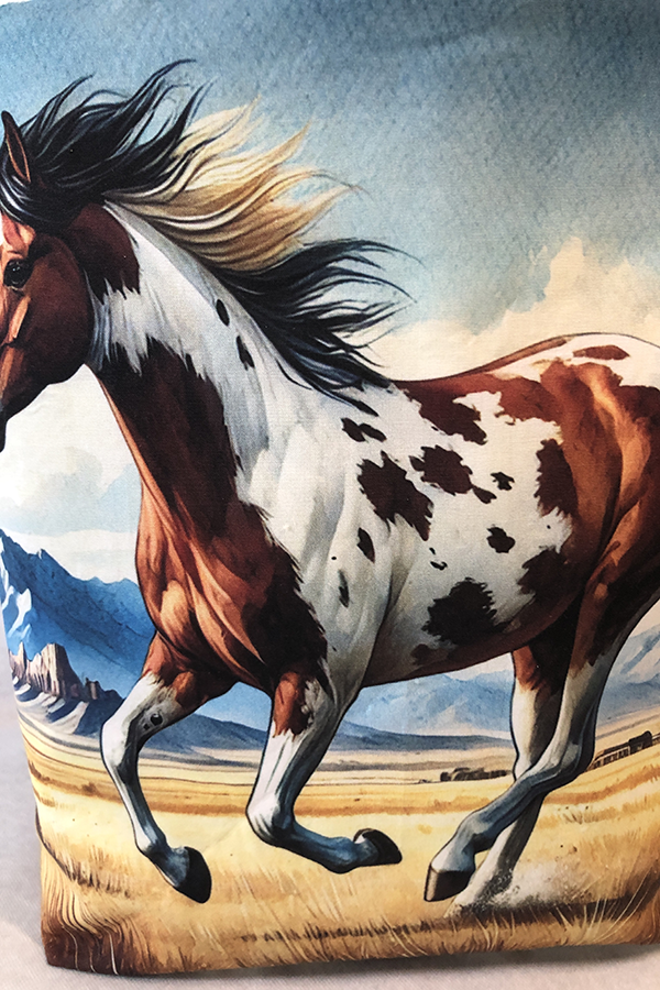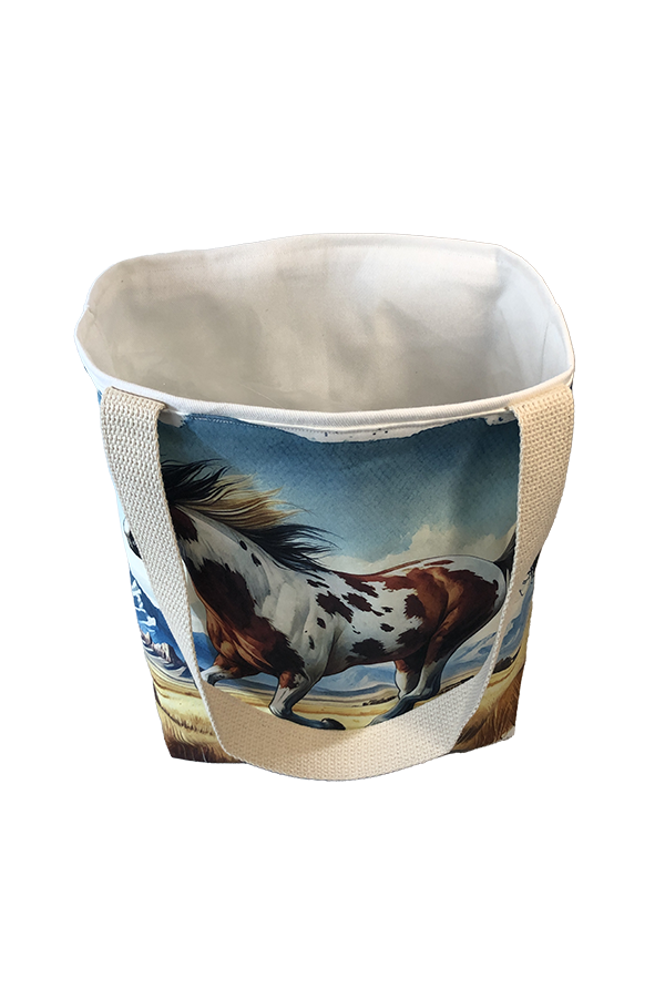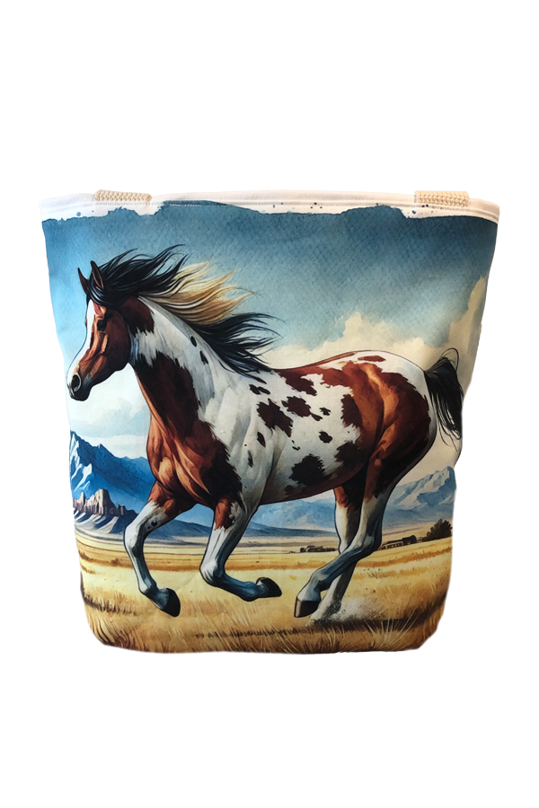 Introducing the epitome of equine elegance and artisan craftsmanship: the Handmade Designer American Paint Brown/Galloping Tote Bag. Standing proud at 14 inches tall and stretching 16 inches wide, this exquisite accessory is a tribute to functionality and style. Crafted with meticulous attention to detail, it will become your wardrobe’s darling. At first glance, your eyes are immediately drawn to the captivating design gracing the tote’s exterior. Adorning the durable fabric are elegant horse graphics, each infused with personality and charm. Their stately demeanor brings a touch of whimsy to the bag, making it a conversation starter wherever you go.