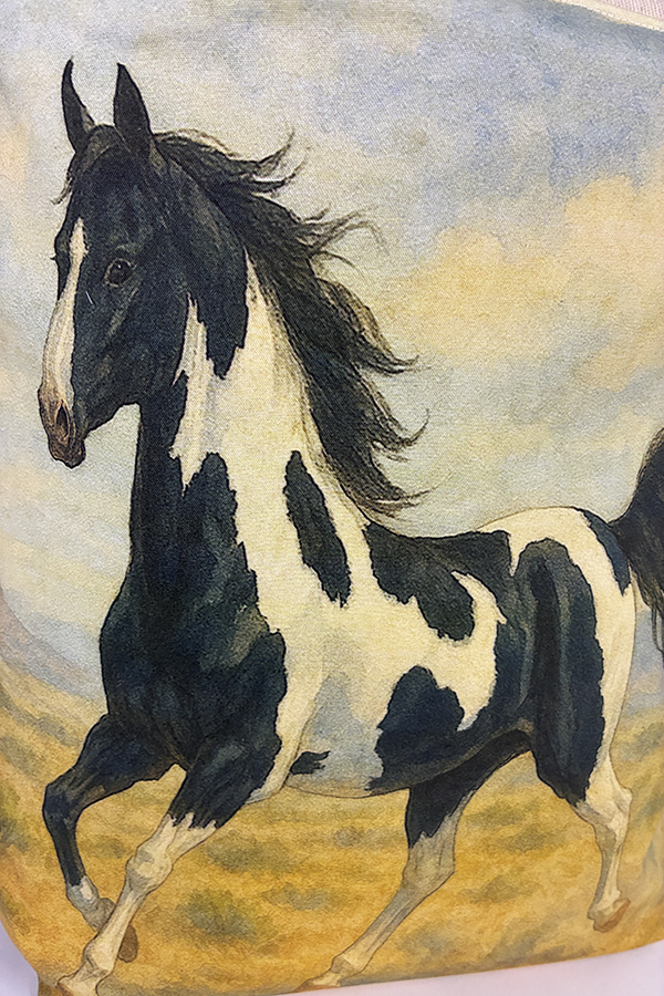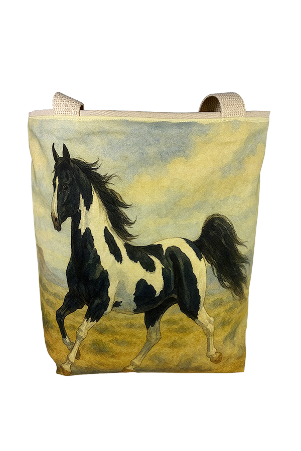 Indulge in the luxury of artisan craftsmanship and equine charm with the Handmade Designer Saddleback Tobiano/Black Galloping Tote Bag. Impeccably crafted and undeniably chic, it is more than just a bag; it’s a statement piece that celebrates the bond between humans and horses, encapsulating the joy and companionship that our majestic friends bring into our lives. Another product that would complement this tote bag is the American Saddlebred Black Galloping Tote Bag. If you would, Click here to visit my Etsy Store.
