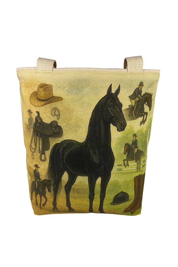 Indulge in the luxury of artisan craftsmanship and equine charm with the Handmade Designer Saddlebred Black Show Tote Bag. Impeccably crafted and undeniably chic, it is more than just a bag; it’s a statement piece that celebrates the bond between humans and horses, encapsulating the joy and companionship that our majestic friends bring into our lives. Another product that would complement this tote bag is the  American Saddlebred Chestnut Galloping Tote Bag. If you would, Click here to visit my Etsy Store.