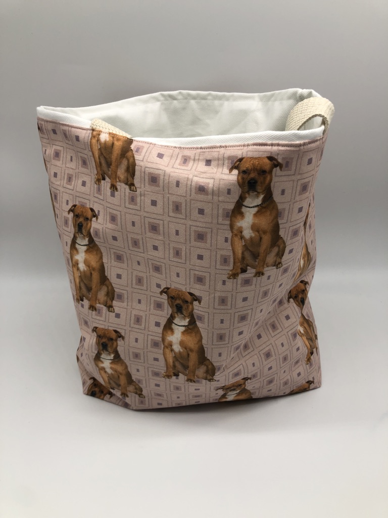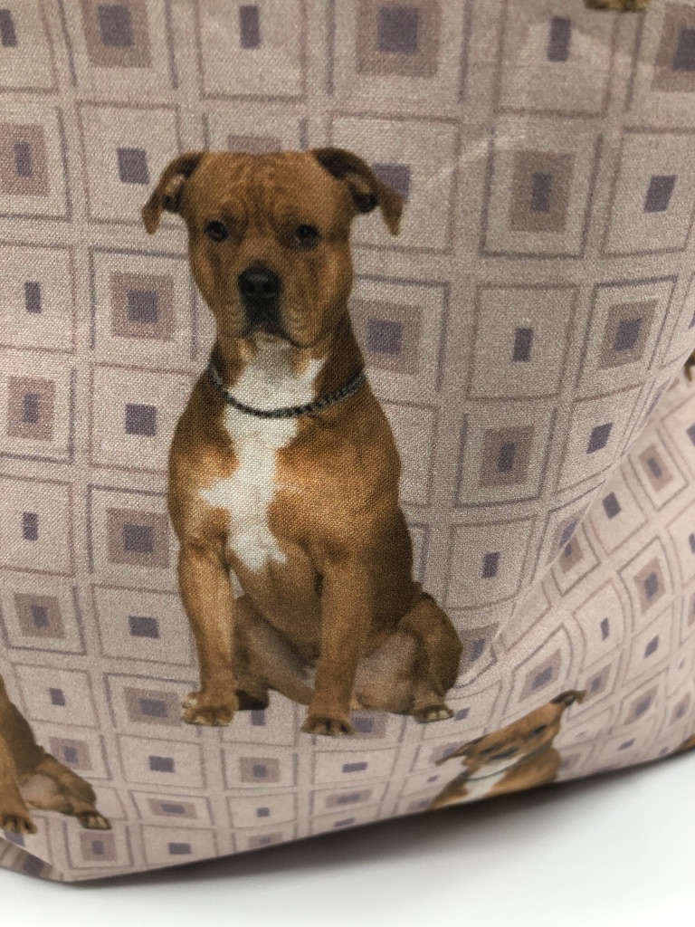 This American Staffordshire#2B Tote Bag is handmade with American Staffordshire-themed designer fabric and is lined with white cotton twill. At Beau Designs, I create hand-detailed products with natural tones, organic textures, and high-end materials. Another product that would complement this American Staffordshire #2B Tote Bag is the American Staffordshire Terrier #2 Christmas Stocking. If you like, Click here to visit my Etsy store.