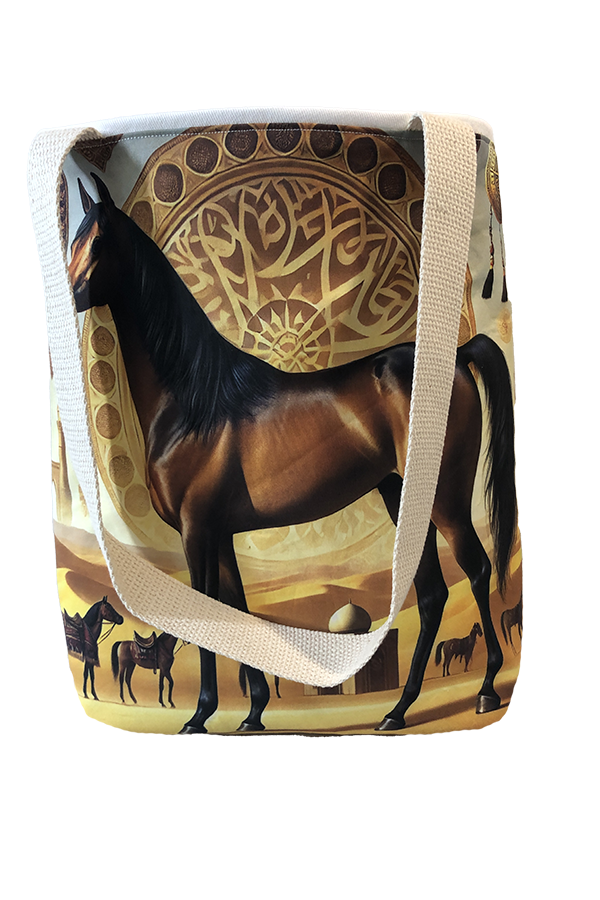 Indulge in the luxury of artisan craftsmanship and equine charm with the Handmade Designer Arabian Bay Heritage Tote Bag. Impeccably crafted and undeniably chic, it is more than just a bag; it’s a statement piece that celebrates the bond between humans and horses, encapsulating the joy and companionship that our majestic friends bring into our lives. Another product that would complement this tote bag is the Arabian Chestnut Galloping Tote Bag. If you would, Click here to visit my Etsy Store.