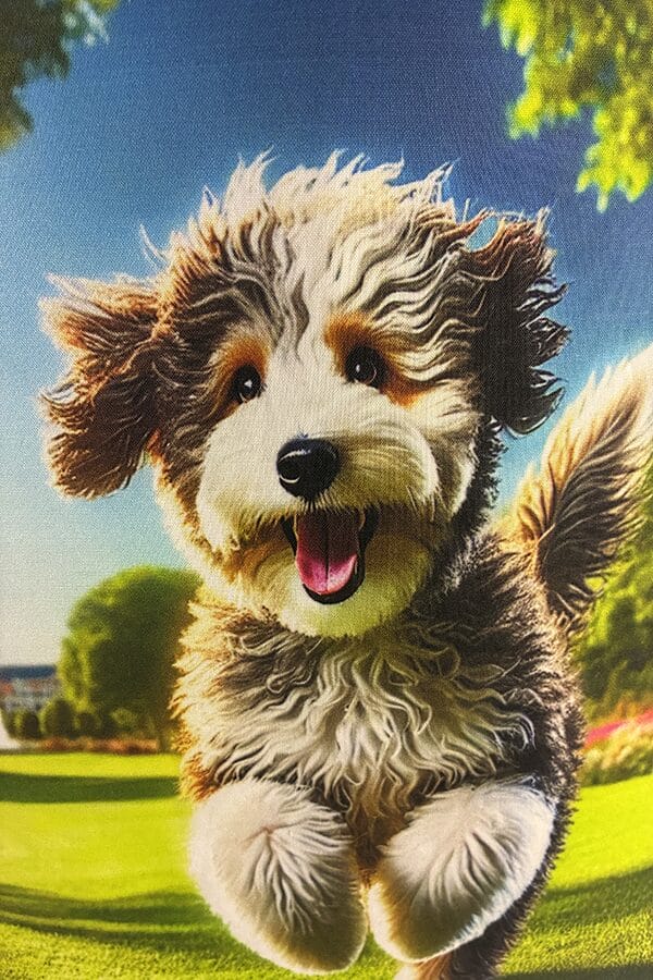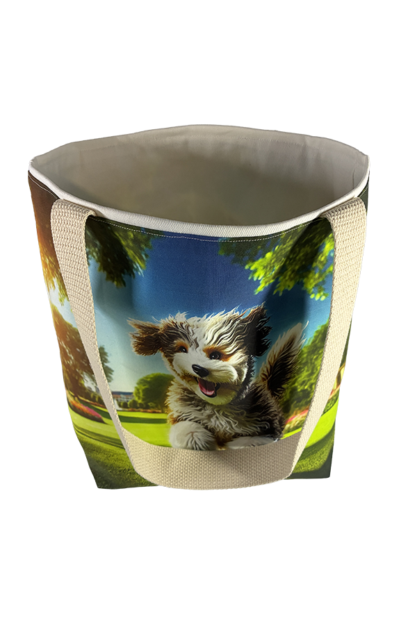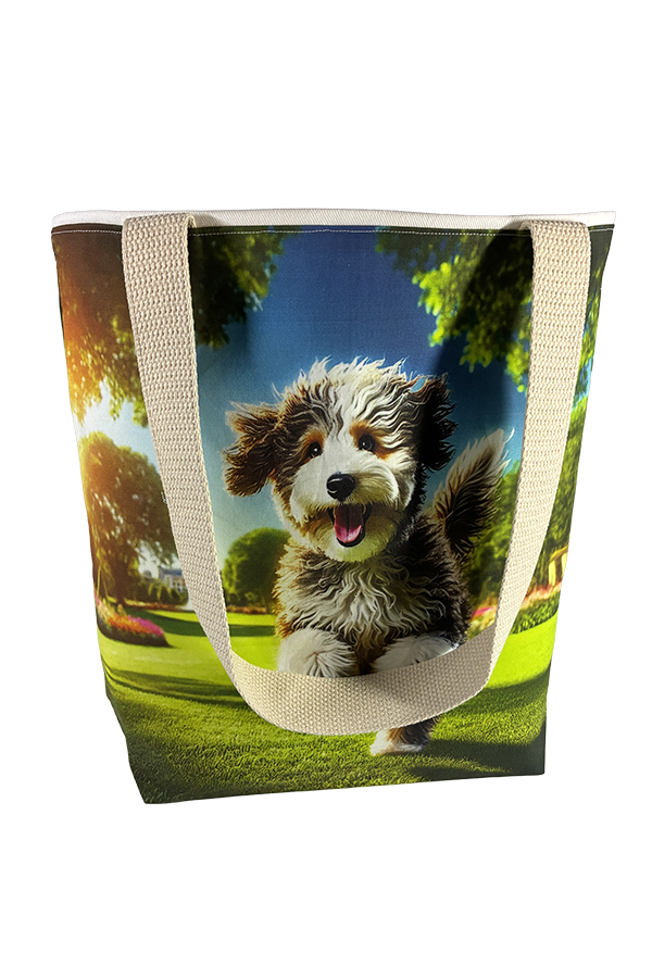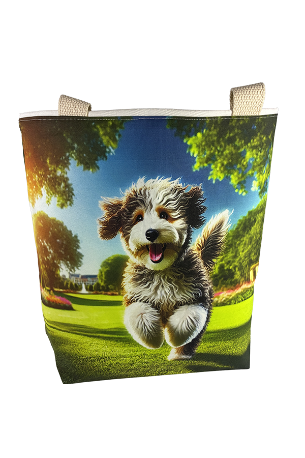 Indulge in the luxury of artisan craftsmanship and canine charm with the Handmade Designer Aussiedoodle Playing Tote Bag. Impeccably crafted and undeniably chic, it is more than just a bag. It’s a statement piece that celebrates the bond between humans and hounds, encapsulating the joy and companionship that our furry friends bring into our lives. Another product that would complement this tote bag is the  Aussiedoodle Park Tote Bag. If you would like. Click here to visit my Etsy Store.