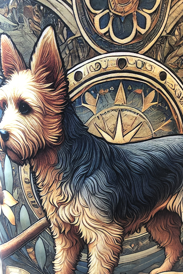 Indulge in the luxury of artisan craftsmanship and canine charm with the Handmade Designer Australian Terrier Nouveau Tote Bag. Impeccably crafted and undeniably chic, it is more than just a bag. It’s a statement piece that celebrates the bond between humans and hounds, encapsulating the joy and companionship that our furry friends bring into our lives. Another product that would complement this tote bag is the New Year’s Eve Squirrel Dog Scarf. If you would like. Click here to visit my Etsy Store.