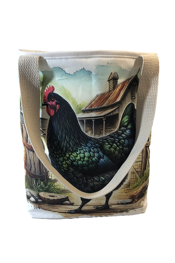 We are introducing a unique accessory for the discerning fashionista: our Handmade Designer Australorp Farm Tote Bag. This exquisite tote combines artistry and functionality, making it a standout piece in any collection.