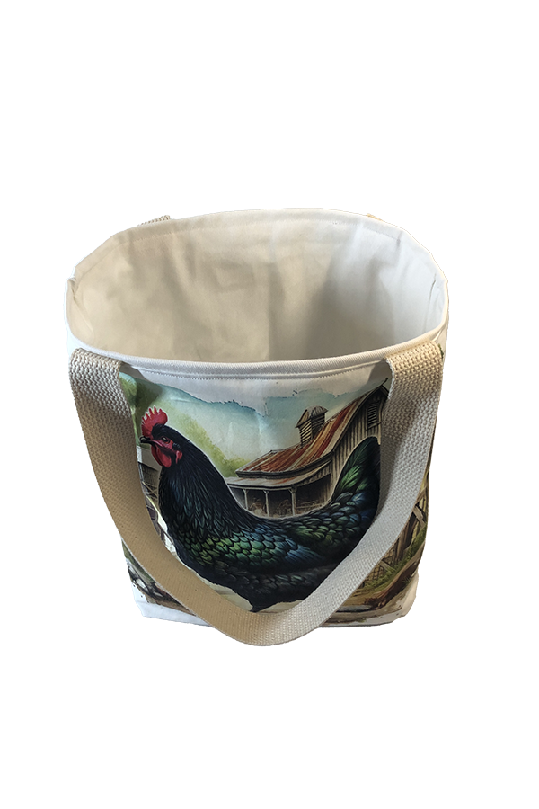 Inside, the Handmade Designer Australorp Farm tote bag features a heavy cotton twill inner layer, providing additional strength and resilience. This sturdy material ensures that the bag can handle your daily essentials with ease, from books and groceries to gym gear and beach towels. The inner layer is designed to withstand wear and tear, so you can rely on this tote for years to come.
