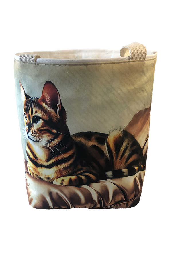 Introducing our exquisite Handmade Designer Bengal Cat Pillow Tote Bag, a perfect blend of artistry, quality, and functionality. This tote is designed for those who appreciate the finer details in life and have a soft spot for feline charm. Each bag is a labor of love, handcrafted to ensure the highest standards of quality and uniqueness. This designer tote bag is crafted from all-cotton fabric and features an elegant and whimsical cat-themed print.