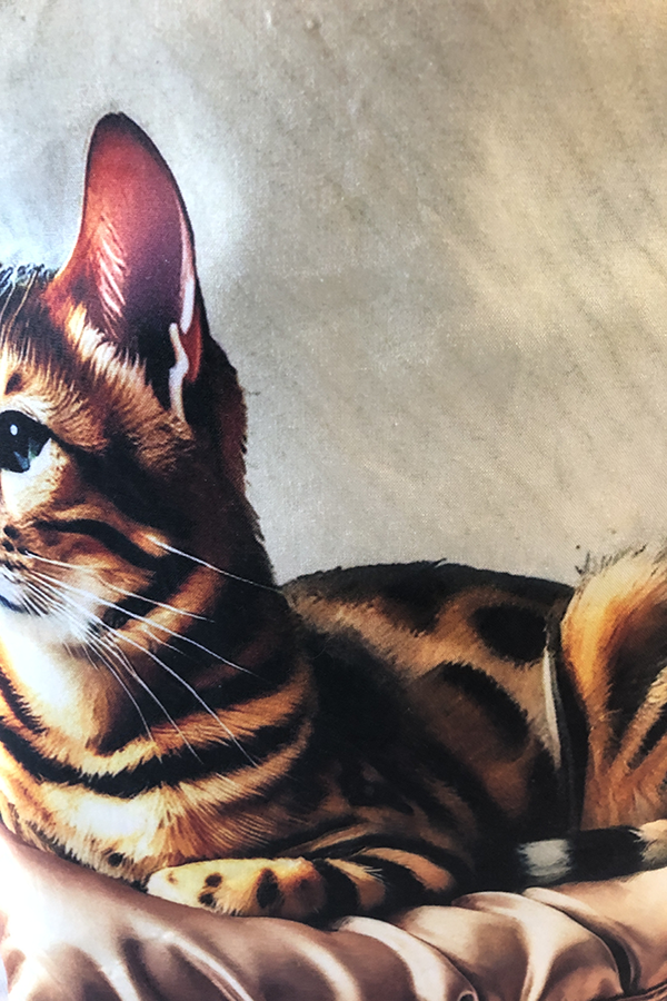 The fabric showcases the beauty of your pet in a relaxed pose, artfully rendered to capture the unique personalities of our beloved feline friends. The print’s vibrant colors and intricate details make this tote a standout accessory, sure to turn heads wherever you go. The interior of This Handmade Designer Bengal Cat Pillow Tote Bag is lined with heavy cotton twill, providing a robust and durable foundation that maintains the bag’s shape and integrity. This high-quality lining not only adds to the bag’s durability but also offers a soft, luxurious feel, ensuring your belongings are well-protected.