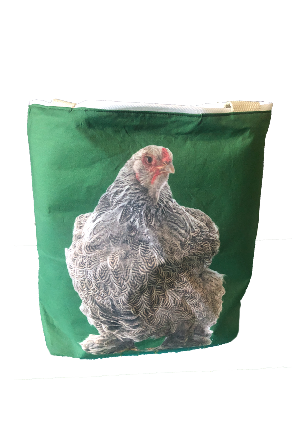 Crafted meticulously, this handmade designer Brahma #4 Green tote bag showcases a picture of a majestic show chicken, capturing its elegance and vibrant plumage in stunning detail. The design is printed on an all-cotton outer layer, which is durable and lends a soft, luxurious feel to the bag. The outer fabric is carefully selected to ensure the striking image remains vibrant and eye-catching, making the tote a conversation starter wherever you go.