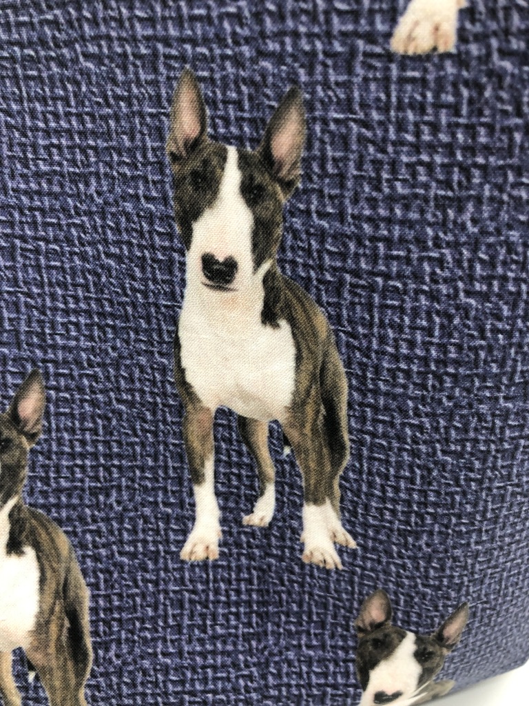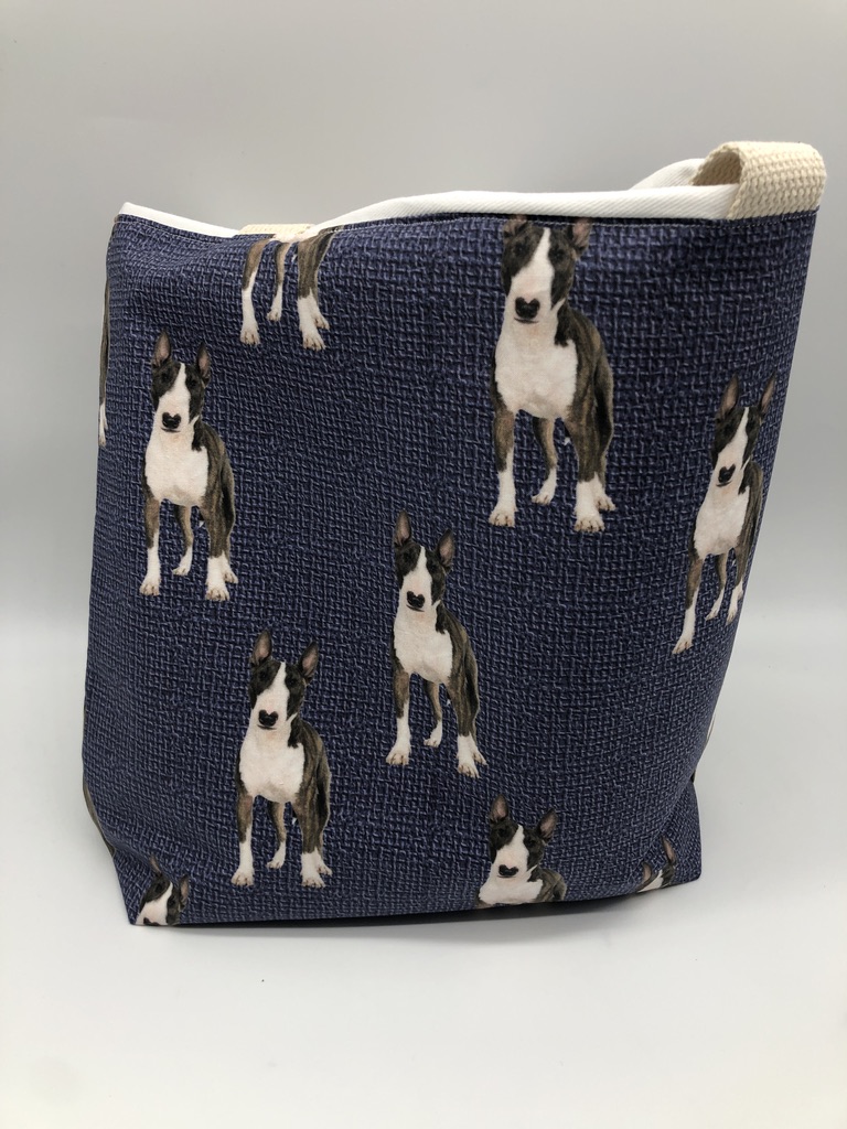 This Bull Terrier #1 Tote Bag is handmade with Bull Terrier-themed designer fabric and it is lined with white cotton twill. At Beau Designs, I create hand-detailed products with natural tones, organic textures, and high-end fabrics. Another product that would complement this Bull Terrier #1 Tote Bag is the Bull Terrier on Blue Christmas Stocking. If you like, Click here to visit my Etsy store.