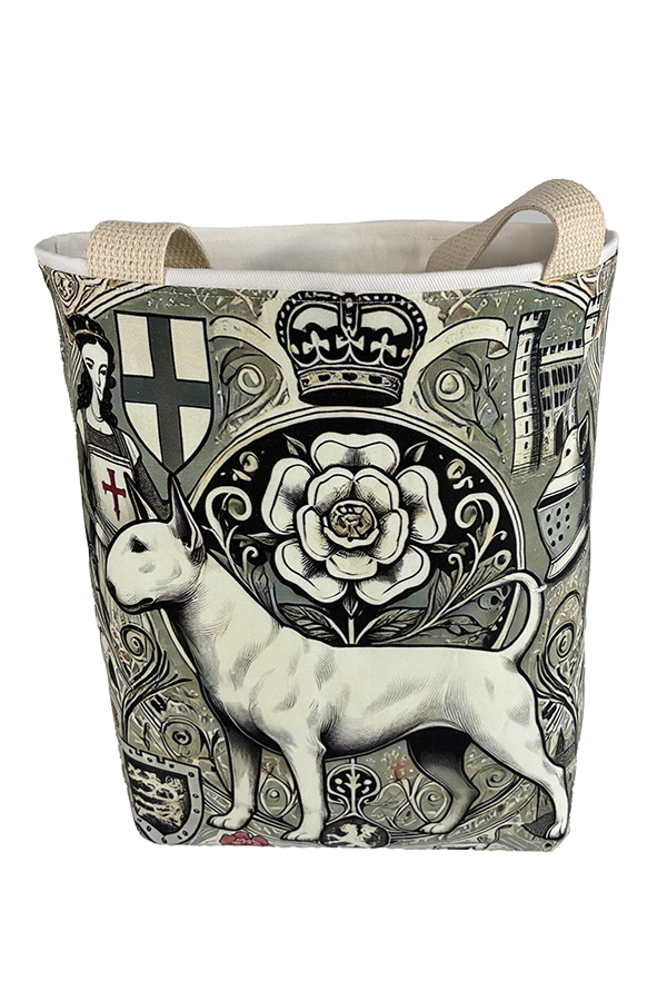 Indulge in the luxury of artisan craftsmanship and canine charm with the Handmade Designer Bull Terrier Heritage Tote Bag. Impeccably crafted and undeniably chic, it is more than just a bag. It’s a statement piece that celebrates the bond between humans and hounds, encapsulating the joy and companionship that our furry friends bring into our lives. Another product that would complement this tote bag is the  Bull Terrier Garden Tote Bag. If you would like. Click here to visit my Etsy Store.