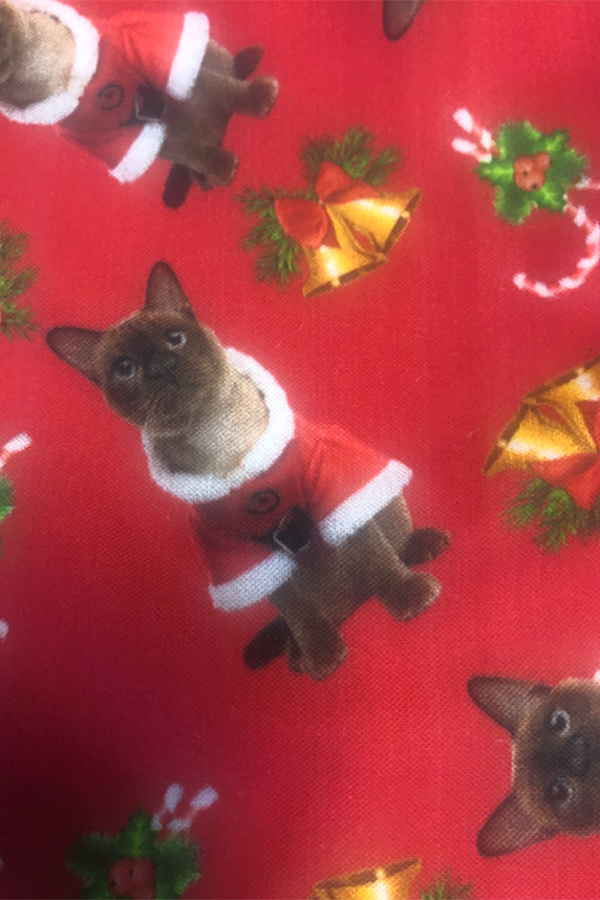 This Handmade Designer Burmese Cat Christmas Stocking features a vibrant exterior that exudes classic Christmas vibes, instantly adding a cozy and festive touch to your home décor. Adorning the outside is an original combination of Christmas-themed art, creating a whimsical and heartwarming scene. The top of the stocking is adorned with a plush, white fleece cuff, providing a luxurious and soft contrast to the textured designer fabric.