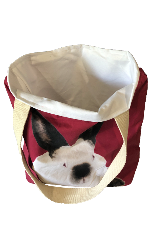 Inside, the tote is lined with heavy-duty cotton twill fabric, ensuring durability and long-lasting use. The lining not only adds structure to the bag, making it sturdy enough to stand on its own, but also provides a smooth, easy-to-clean surface that protects your belongings. Whether you’re carrying books, groceries, or your favorite knitting supplies, this Handmade Designer Californian Rabbit Burgundy Tote Bag is designed to handle the load with ease.