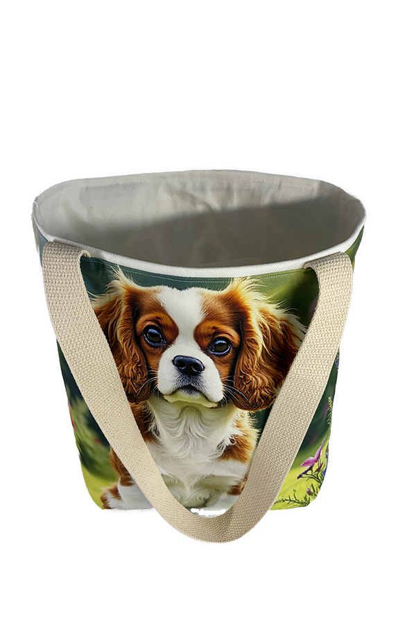 A beautifully designed tote featuring a detailed Cavalier King Charles Theme. Clean, durable, and easy to carry, this bag is designed for everyday use with a timeless, refined look.