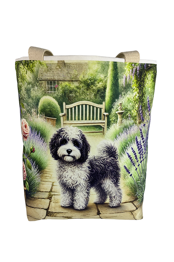 But beauty is not merely skin-deep. This Handmade Designer Cavapoo Black/White Garden Tote Bag boasts functionality as impressive as its aesthetics. The exterior fabric, carefully selected for its durability and resilience, keeps your belongings secure and protected during your travels.