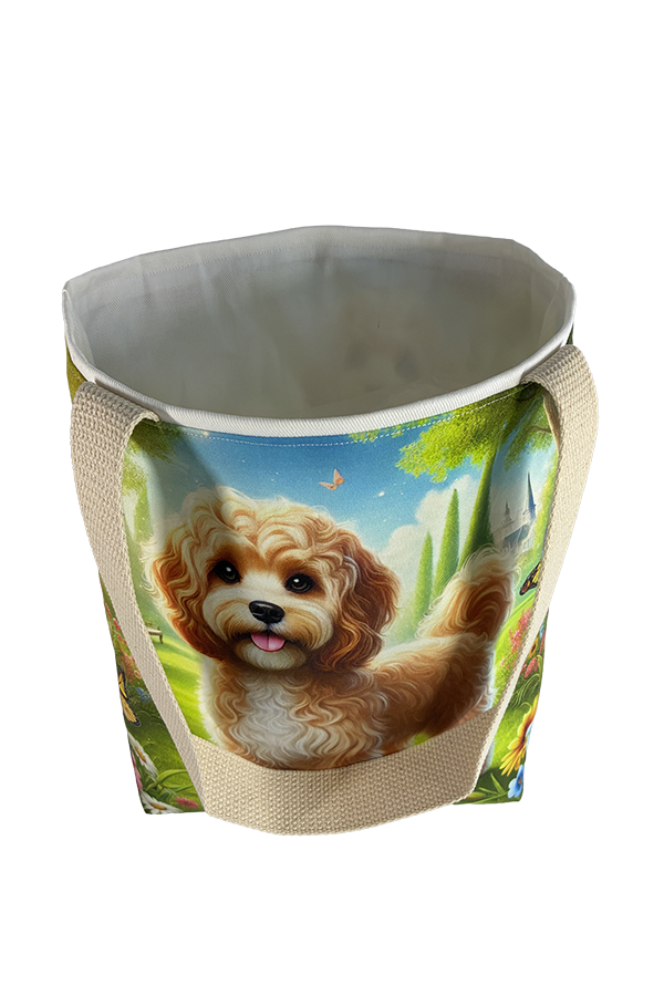 But beauty is not merely skin-deep. This Handmade Designer Cavapoo Tan/White Park Tote Bag boasts functionality as impressive as its aesthetics. The exterior fabric, carefully selected for its durability and resilience, keeps your belongings secure and protected during your travels.