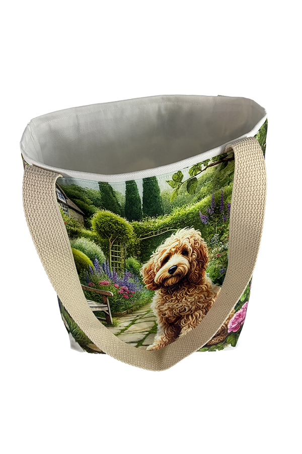 But beauty is not merely skin-deep. This Handmade Designer Cockapoo Blond Garden Tote Bag boasts functionality as impressive as its aesthetics. The exterior fabric, carefully selected for its durability and resilience, keeps your belongings secure and protected during your travels.