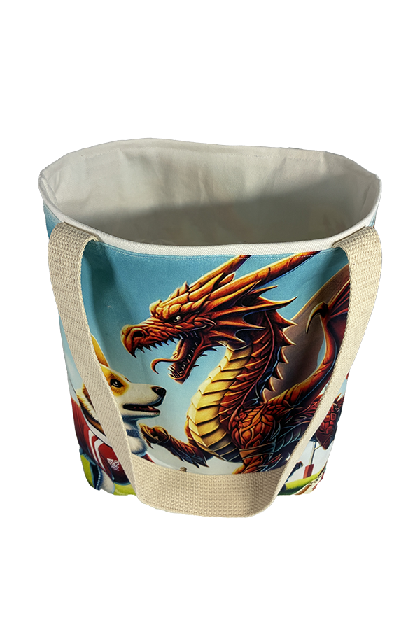 Introducing the epitome of canine elegance and artisan craftsmanship: the Handmade Designer Corgi Rugby Tote Bag. Standing proud at 14 inches tall and stretching 16 inches wide, this exquisite accessory is a tribute to functionality and style. Crafted with meticulous attention to detail, it will become your wardrobe’s darling. At first glance, your eyes are immediately drawn to the captivating design gracing the tote’s exterior. Your pet is displayed in a beautiful scene with personality and charm. Their playful demeanor brings a touch of whimsy to the bag, making it a conversation starter wherever you go.