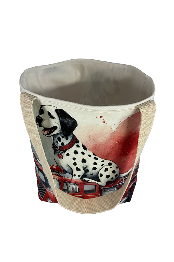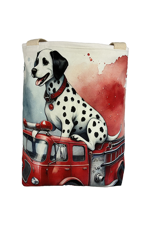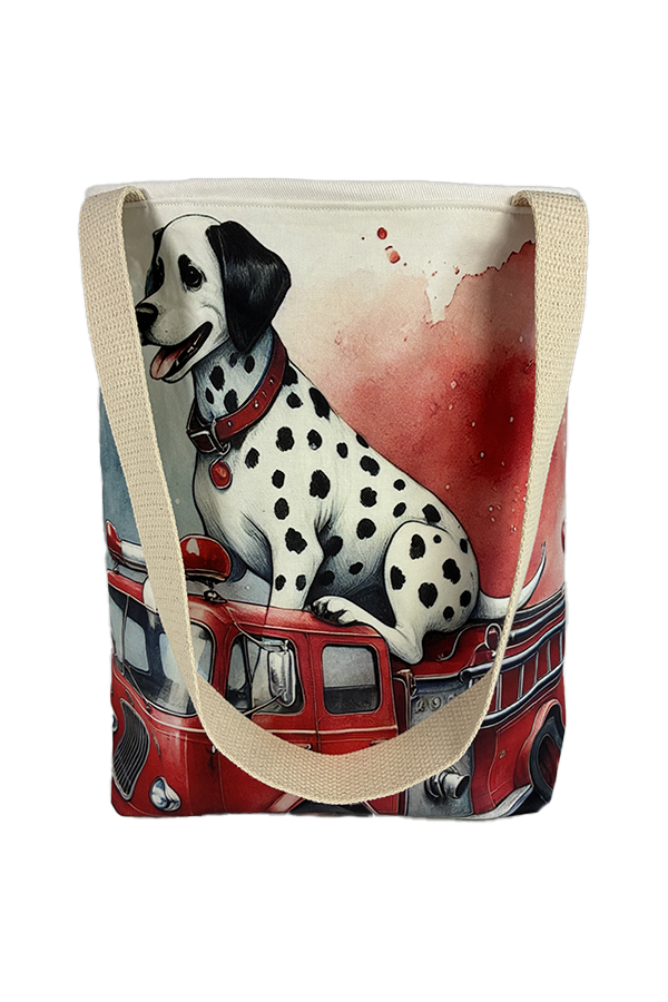 But beauty is not merely skin-deep. This Handmade Designer Dalmatian Firetruck Tote Bag boasts functionality as impressive as its aesthetics. The exterior fabric, carefully selected for its durability and resilience, keeps your belongings secure and protected during your travels.