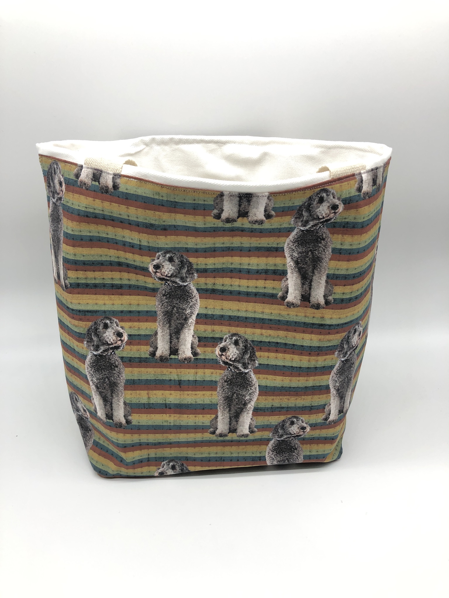 This Doodle #29B Tote Bag is handmade with Doodle-themed designer fabric and is lined with white cotton twill. At Beau Designs, I create hand-detailed products with natural tones, organic textures, and high-end materials. Another product that would compliment this Doodle #29 Tote Bag is the Independence Day Dog Scarf. If you would like, Click here to visit my Etsy store.