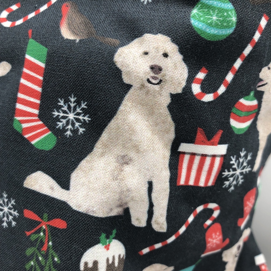 This Doodle Blond Christmas stocking is made with Doodle-themed designer fabric and lined with soft anti-pill fleece. All Christmas stockings are handmade by me in my studio. Another product complimenting this Doodle Blond Christmas stocking is the Doodle #14 Tote Bag.  If you would like, Click here to visit my Etsy site.