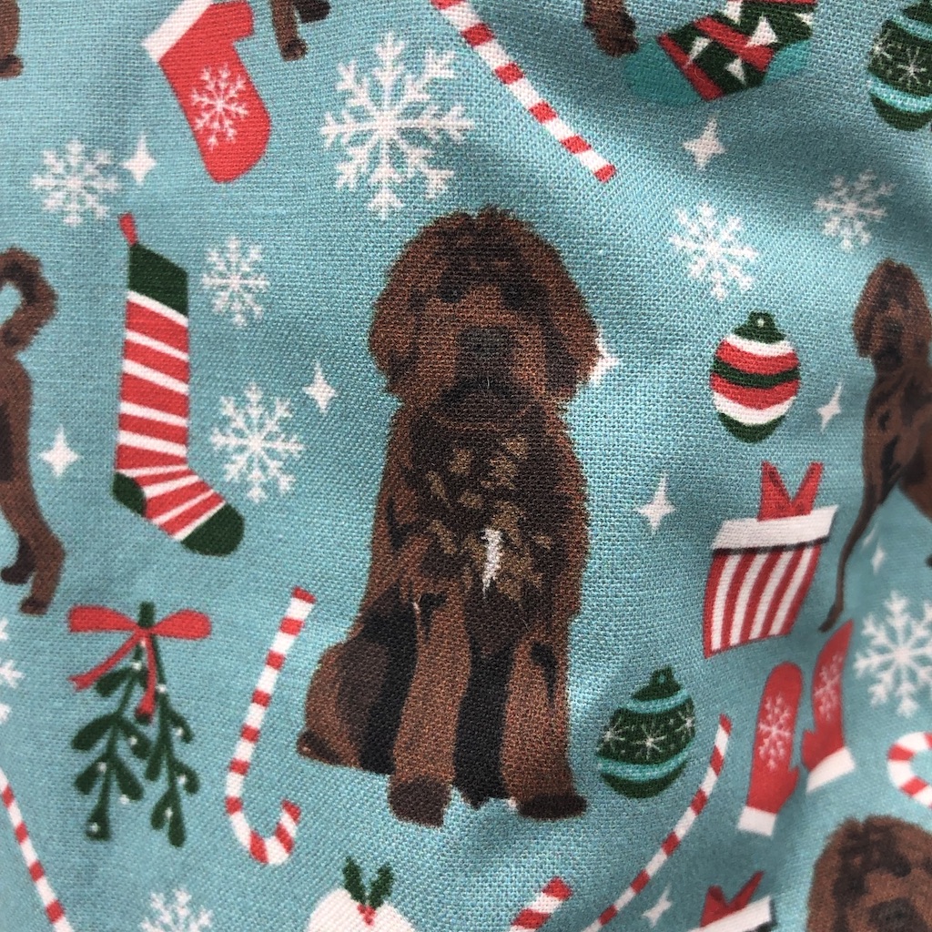 This Doodle on Blue Christmas stocking is made with Doodle-themed designer fabric and lined with soft anti-pill fleece. All Christmas stockings are handmade by me in my studio. Another product complimenting this Doodle on Blue Christmas stocking is the Doodle #11 Squirrel Scarf.  If you would like, Click here to visit my Etsy site.