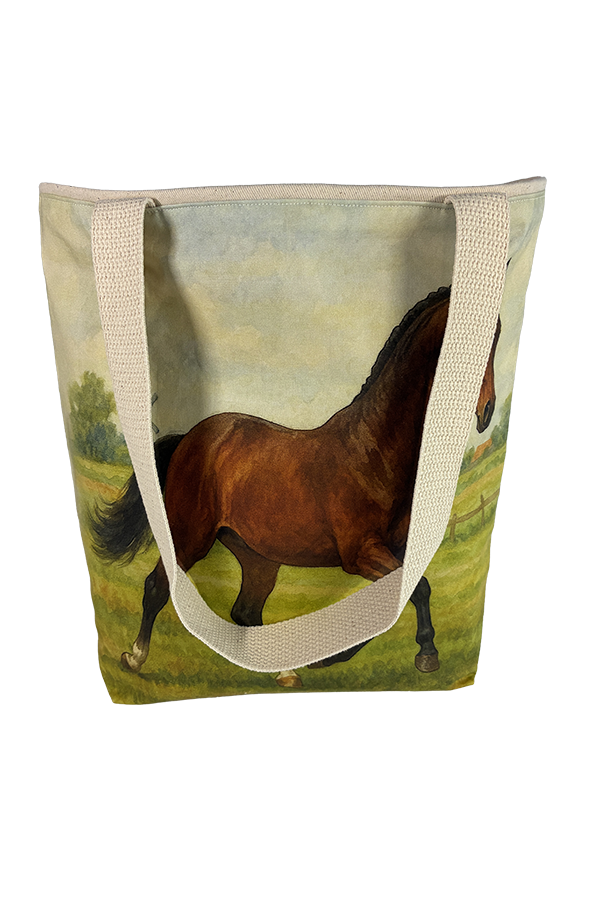 But beauty is not merely skin-deep. This Handmade Designer Warmblood Brown Galloping Tote Bag boasts functionality as impressive as its aesthetics. The exterior fabric, carefully chosen for its durability and resilience, ensures that your belongings remain secure and protected during your travels. Meanwhile, the spacious interior, lined with 100% eco-friendly natural cotton twill, provides a soft, luxurious sanctuary for your essentials. As your fingers trace the bag’s contours, you’ll appreciate the thoughtful details woven into its construction. The one-and-a-half-inch-wide natural cotton strap, meticulously stitched, offers both comfort and durability, effortlessly accommodating the weight of your belongings while adding a touch of rustic charm to the ensemble.