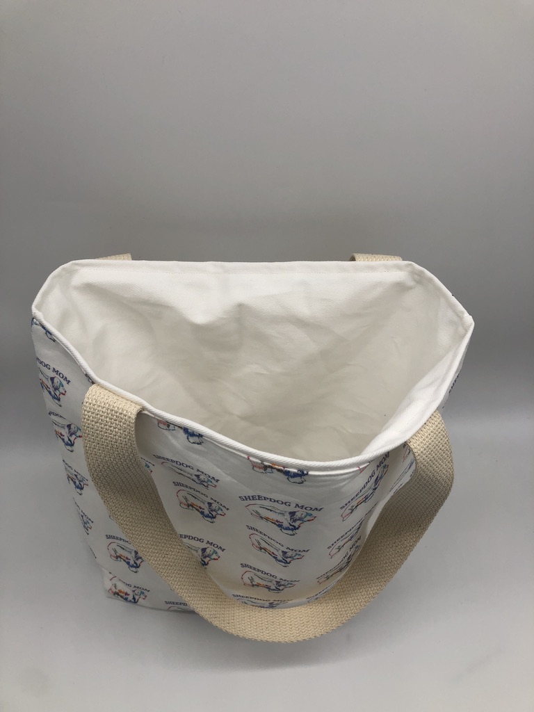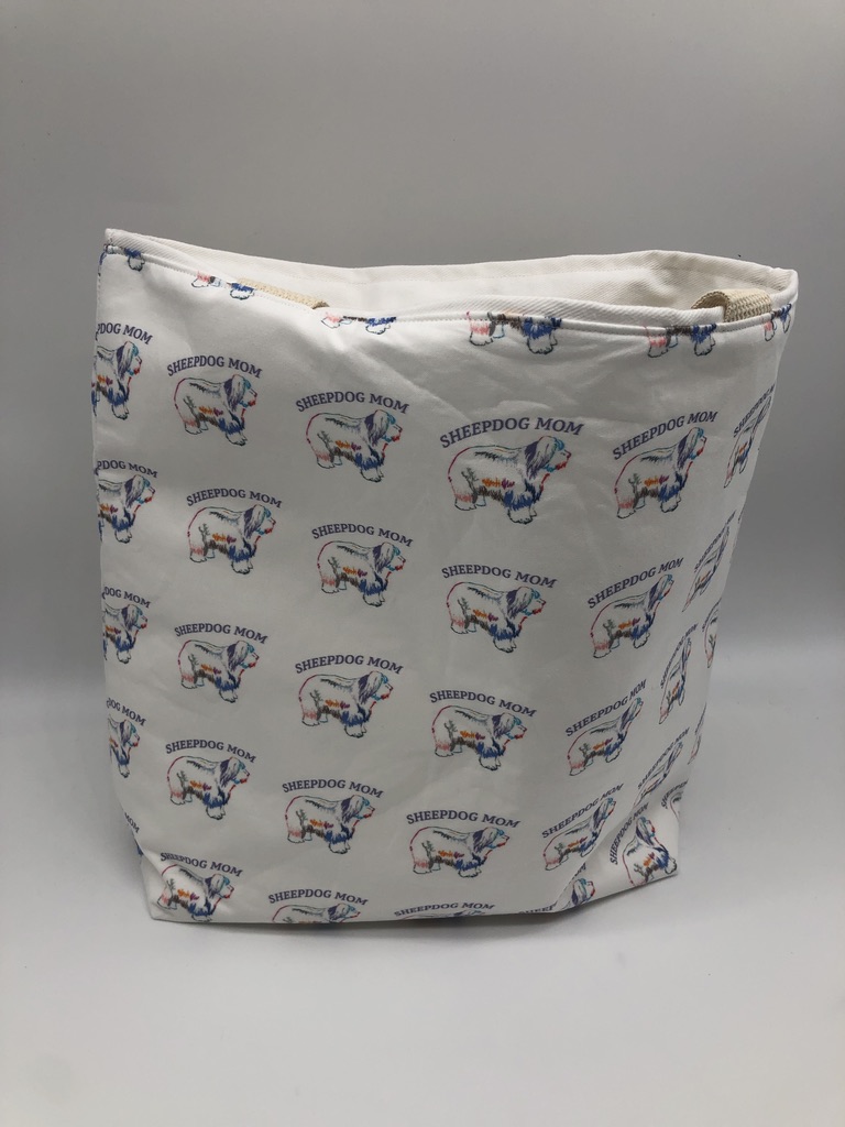 This English Sheepdog Mom Tote Bag is handmade with English Sheepdog-themed designer fabric and is lined with white cotton twill. At Beau Designs, I create hand-detailed products with natural tones, organic textures, and high-end materials. Another product complementing this English Sheepdog Mom Tote Bag is the English Sheepdog Christmas Stocking. If you like, Click here to visit my Etsy store.