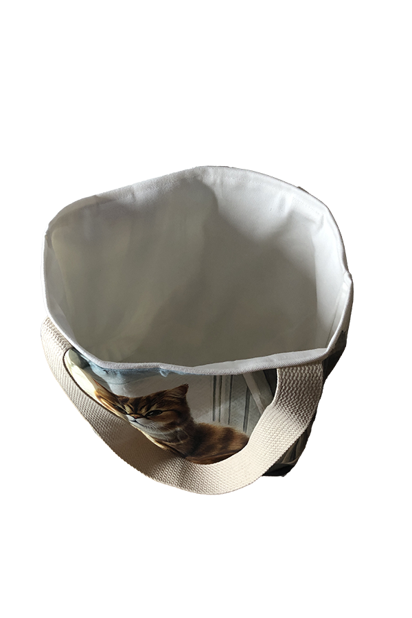 The fabric showcases the beauty of your pet a relaxed pose, artfully rendered to capture the unique personalities of our beloved feline friends. The print’s vibrant colors and intricate details make this tote a standout accessory, sure to turn heads wherever you go. The interior of This Handmade Designer Exotic Shorthair/Tabby Tote Bag is lined with heavy cotton twill, providing a robust and durable foundation that maintains the bag’s shape and integrity. This high-quality lining not only adds to the bag’s durability but also offers a soft, luxurious feel, ensuring your belongings are well-protected.