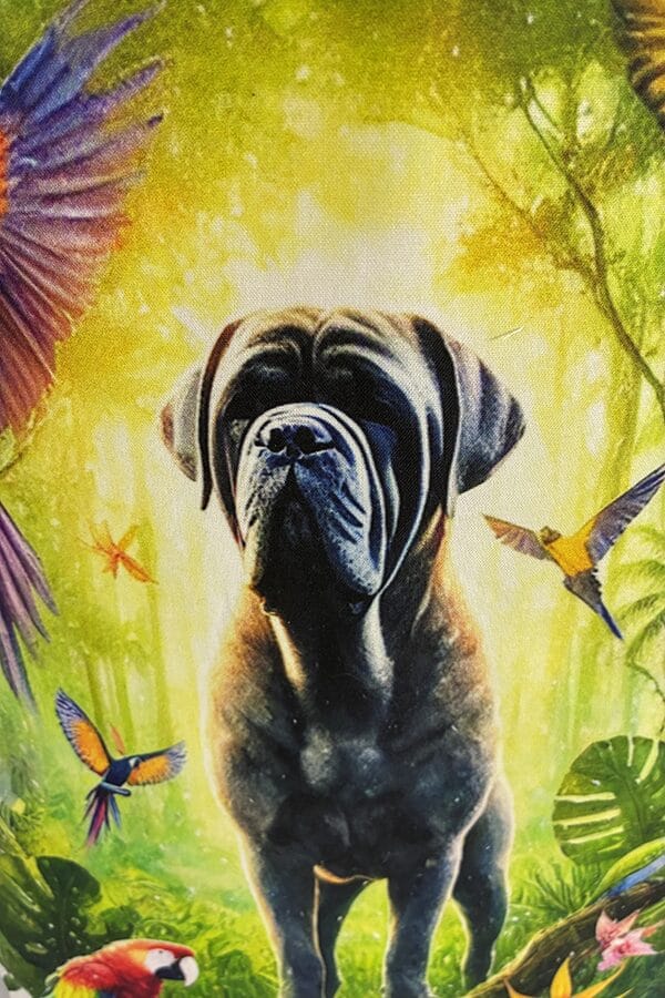 Introducing the epitome of canine elegance and artisan craftsmanship: the Handmade Designer Fila Brasileiro Jungle Tote Bag. Standing proud at 14 inches tall and stretching 16 inches wide, this exquisite accessory is a tribute to functionality and style. Crafted with meticulous attention to detail, it will become your wardrobe’s darling. At first glance, your eyes are immediately drawn to the captivating design gracing the tote’s exterior. Your pet is displayed in a beautiful scene with personality and charm. Their playful demeanor brings a touch of whimsy to the bag, making it a conversation starter wherever you go.
