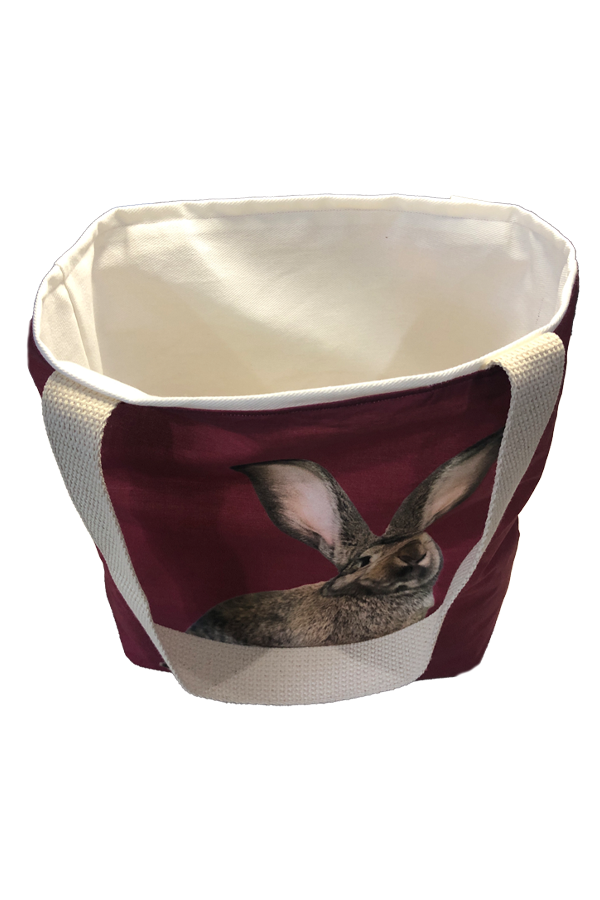 Inside, the tote is lined with heavy-duty cotton twill fabric, ensuring durability and long-lasting use. The lining not only adds structure to the bag, making it sturdy enough to stand on its own but it also provides a smooth, easy-to-clean surface that protects your belongings. Whether you’re carrying books, groceries, or your favorite knitting supplies, this Handmade Designer Flemish Giant Burgundy Tote Bag is designed to handle the load with ease.