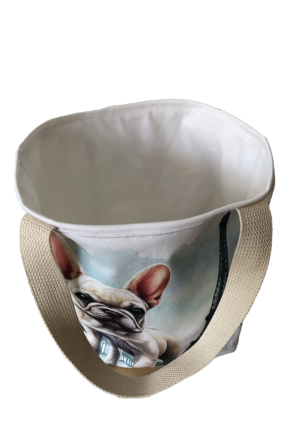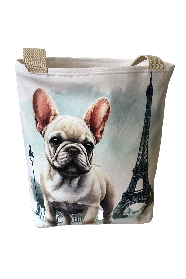Introducing the epitome of canine elegance and artisan craftsmanship: the Handmade Designer Frenchy Blond Eiffel Tote Bag. Standing proud at 14 inches tall and stretching 16 inches wide, this exquisite accessory is a tribute to functionality and style. Crafted with meticulous attention to detail, it will become your wardrobe’s darling. At first glance, your eyes are immediately drawn to the captivating design gracing the tote’s exterior. Your pet is displayed in a beautiful scene on a durable fabric. The playful demeanor brings a touch of whimsy to the bag, making it a conversation starter wherever you go.