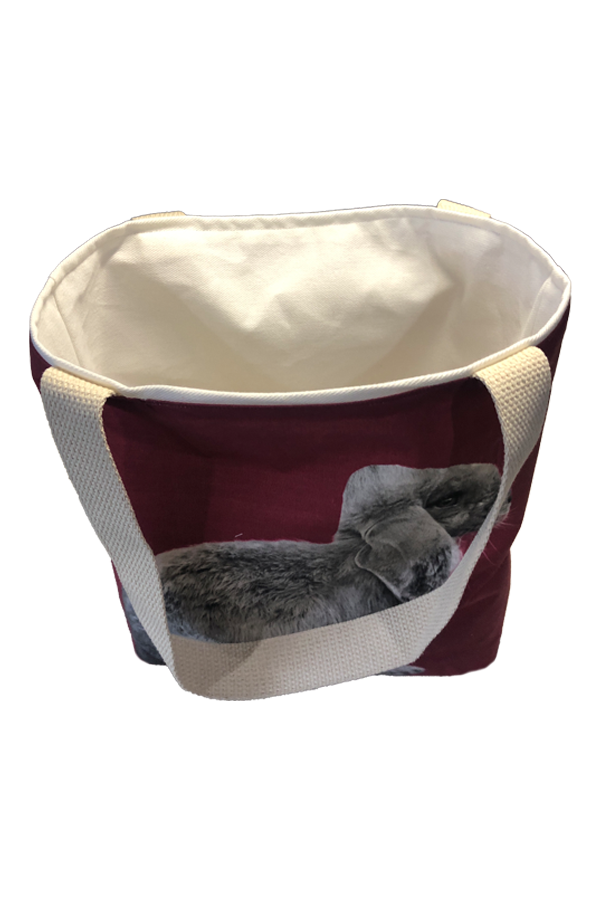 Inside, the tote is lined with heavy-duty cotton twill fabric, ensuring durability and long-lasting use. The lining not only adds structure to the bag, making it sturdy enough to stand on its own but it also provides a smooth, easy-to-clean surface that protects your belongings. Whether you’re carrying books, groceries, or your favorite knitting supplies, this Handmade Designer French Lop#1 Burgundy Tote Bag is designed to handle the load with ease.