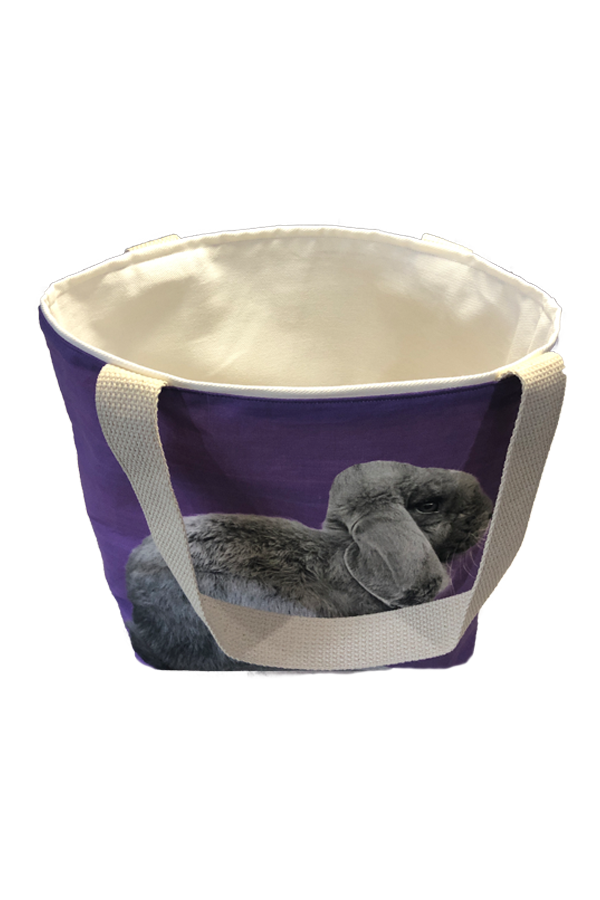 Inside, the tote is lined with heavy-duty cotton twill fabric, ensuring durability and long-lasting use. The lining not only adds structure to the bag, making it sturdy enough to stand on its own but it also provides a smooth, easy-to-clean surface that protects your belongings. Whether you’re carrying books, groceries, or your favorite knitting supplies, this Handmade Designer French Lop#1 Purple Tote Bag is designed to handle the load with ease.