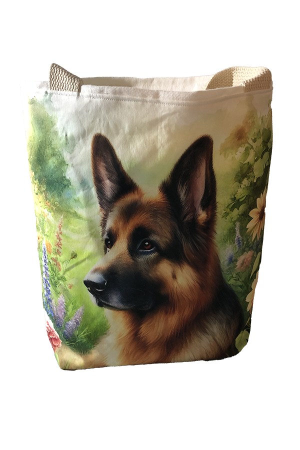 Indulge in the luxury of artisan craftsmanship and canine charm with the Handmade Designer German Shepherd Flowers Tote Bag. Impeccably crafted and undeniably chic, it is more than just a bag. It’s a statement piece that celebrates the bond between humans and hounds, encapsulating the joy and companionship that our furry friends bring into our lives. Another product that would complement this tote bag is the German Shepherd Christmas Stocking. If you would like. Click here to visit my Etsy Store.