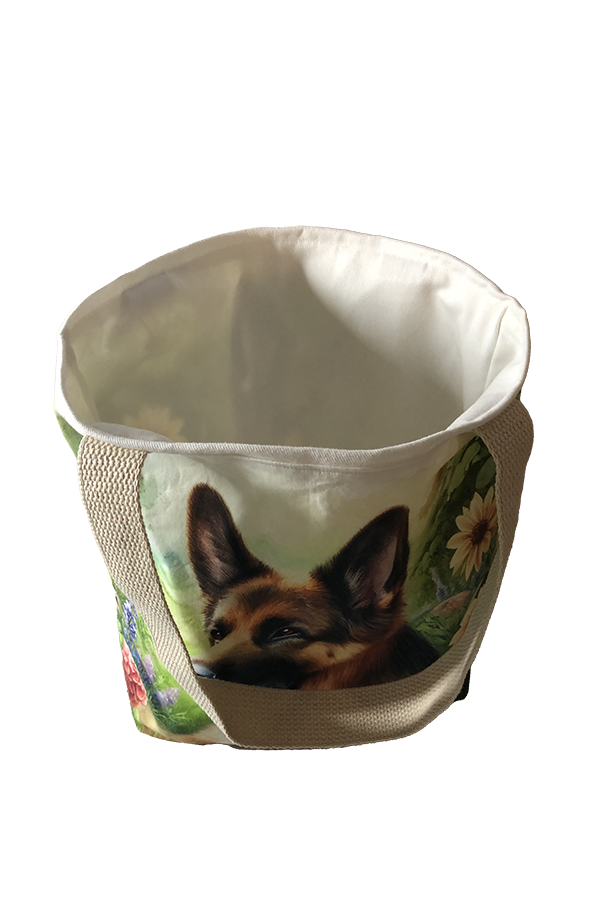 Introducing the epitome of canine elegance and artisan craftsmanship: the Handmade Designer German Shepherd Flowers Tote Bag. Standing proud at 14 inches tall and stretching 16 inches wide, this exquisite accessory is a tribute to functionality and style. Crafted with meticulous attention to detail, it will become your wardrobe’s darling. At first glance, your eyes are immediately drawn to the captivating design gracing the tote’s exterior. Your pet is displayed in a beautiful scene on a durable fabric. The playful demeanor brings a touch of whimsy to the bag, making it a conversation starter wherever you go.