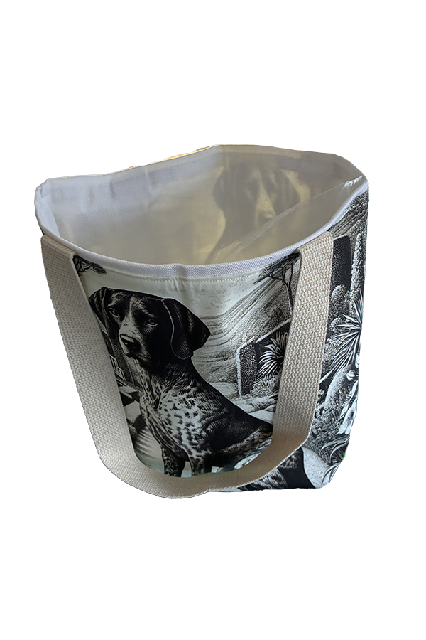 Introducing the epitome of canine elegance and artisan craftsmanship: the Handmade Designer German Shorthair Engraving Tote Bag. Standing proud at 14 inches tall and stretching 16 inches wide, this exquisite accessory is a tribute to functionality and style. Crafted with meticulous attention to detail, it will become your wardrobe’s darling. At first glance, your eyes are immediately drawn to the captivating design gracing the tote’s exterior. Your pet is displayed in a beautiful scene with personality and charm. Their playful demeanor brings a touch of whimsy to the bag, making it a conversation starter wherever you go.
