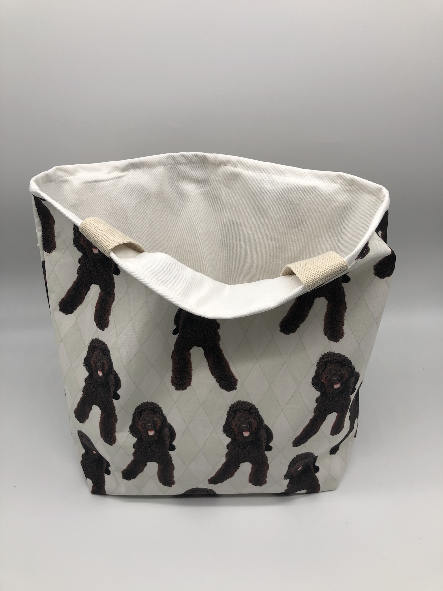 This Goldendoodle #4A Tote Bag is handmade with themed designer fabric and is lined with white cotton twill. At Beau Designs, I create hand-detailed products with natural tones, organic textures, and high-end materials. Another product that would compliment this Goldendoodle #4A Tote Bag is the Native American Day Dog Scarf. If you would like, Click here to visit my Etsy store.