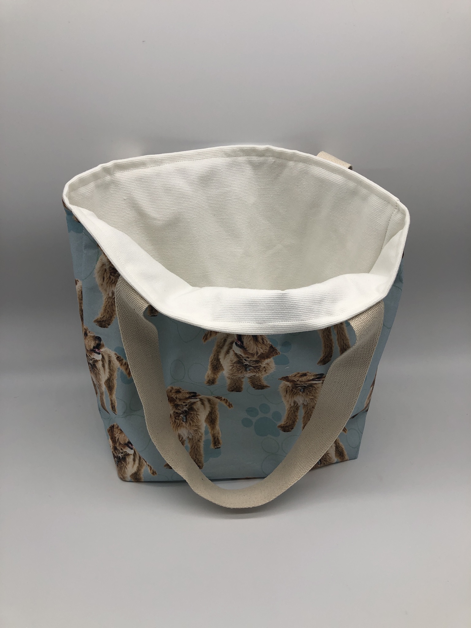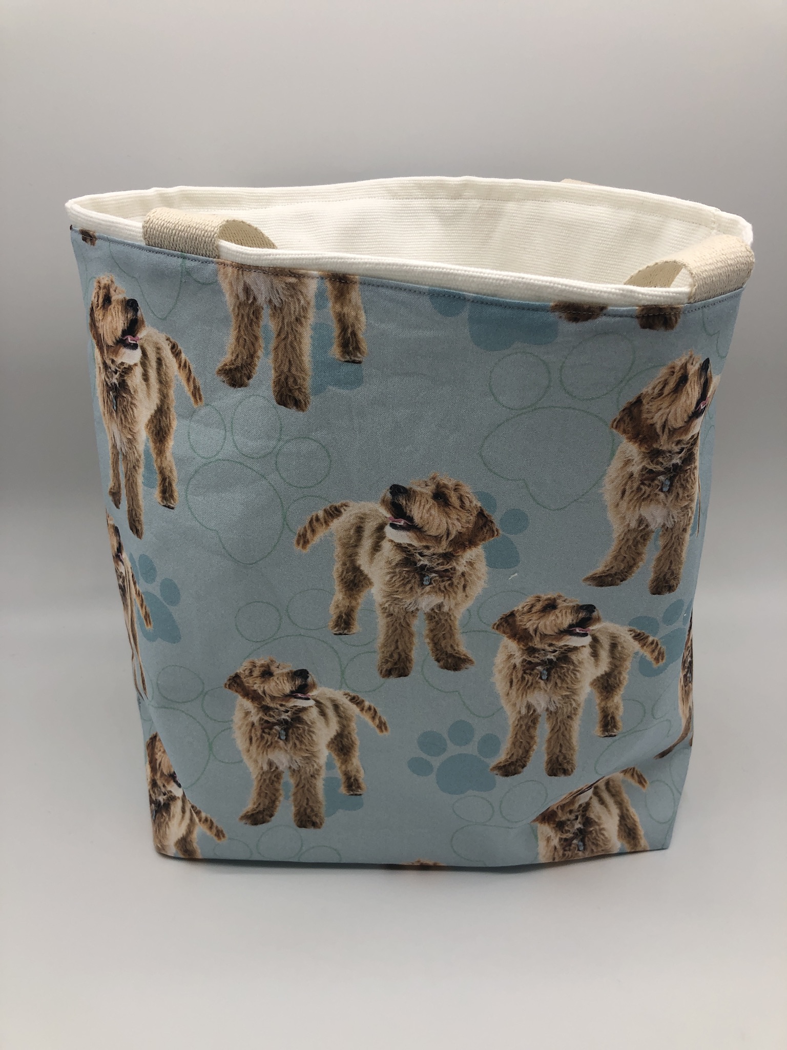 This Goldendoodle #7A Tote Bag is handmade with Doodle-themed designer fabric and is lined with white cotton twill. At Beau Designs, I create hand-detailed products with natural tones, organic textures, and high-end materials. Another product complimenting this Goldendoodle #7A Tote Bag is the Arbor Day Dog Scarf. If you would like, Click here to visit my Etsy store.