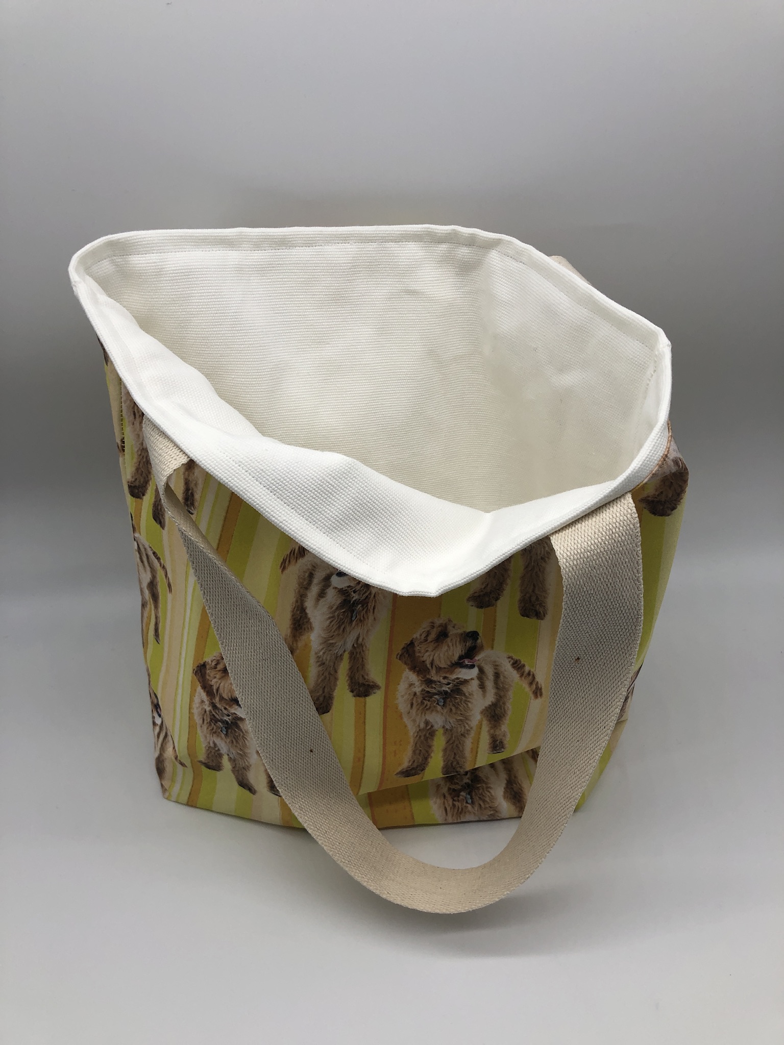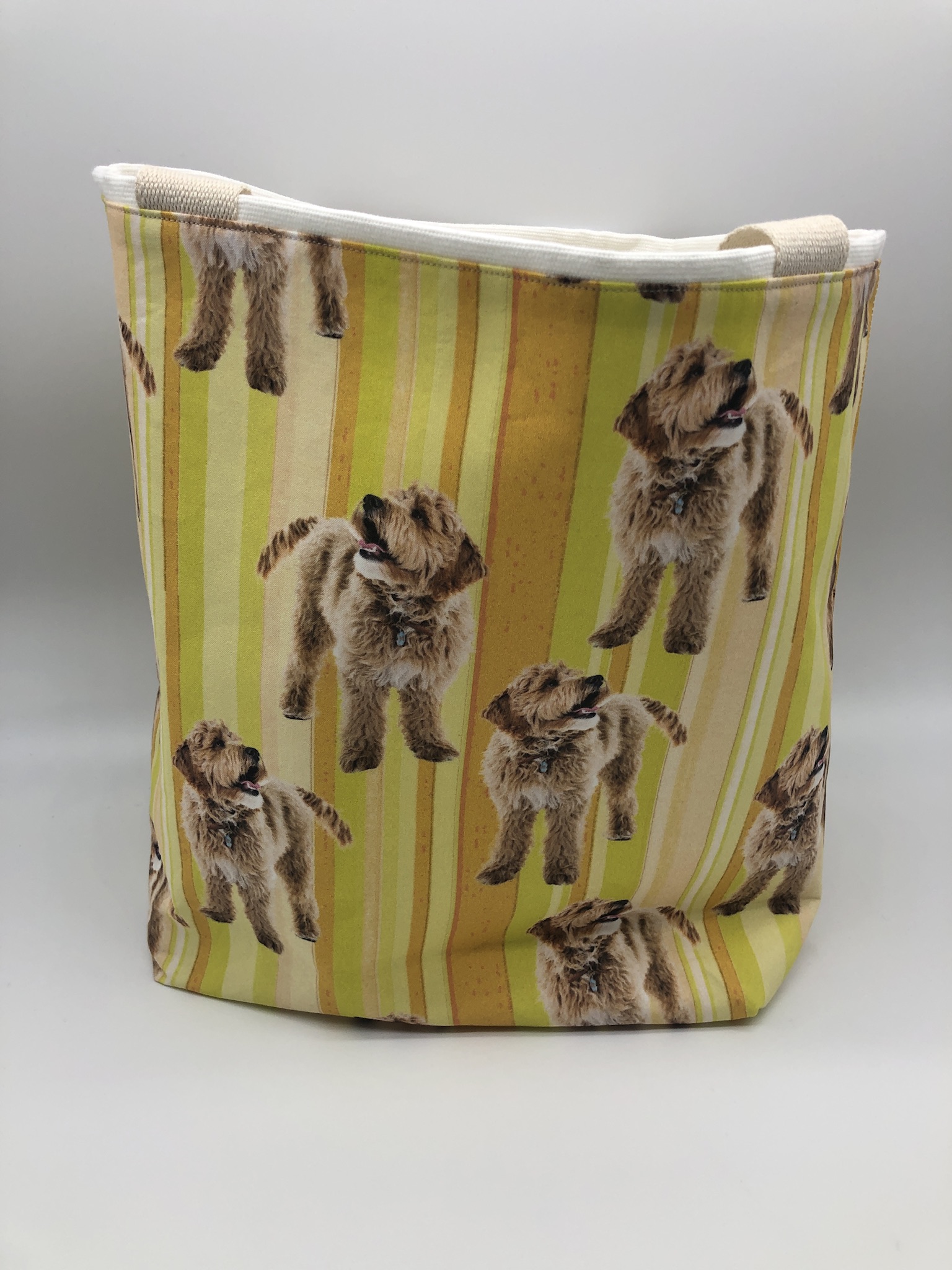 This Goldendoodle #7B Tote Bag is handmade with Doodle-themed designer fabric and is lined with white cotton twill. At Beau Designs, I create hand-detailed products with natural tones, organic textures, and high-end materials. Another product that would compliment this Goldendoodle #7B Tote Bag is the Independence Day Dog Scarf. If you would like, Click here to visit my Etsy store.