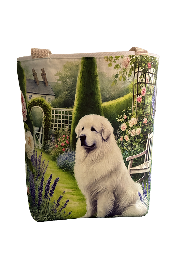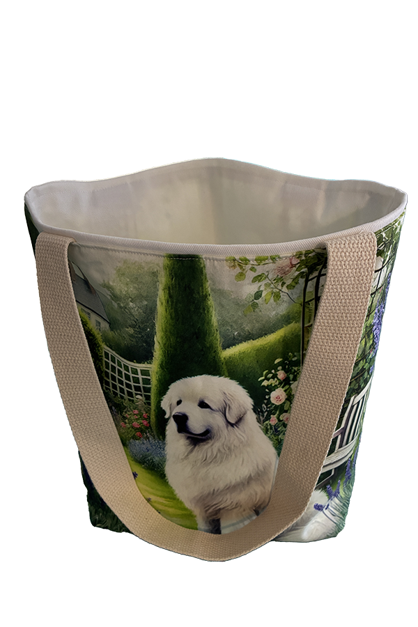 Introducing the epitome of canine elegance and artisan craftsmanship: the Handmade Designer Great Pyrenees Watercolor Tote Bag. Standing proud at 14 inches tall and stretching 16 inches wide, this exquisite accessory is a tribute to functionality and style. Crafted with meticulous attention to detail, it will become your wardrobe’s darling. At first glance, your eyes are immediately drawn to the captivating design gracing the tote’s exterior. Your pet is displayed in a beautiful scene with personality and charm. Their playful demeanor brings a touch of whimsy to the bag, making it a conversation starter wherever you go.