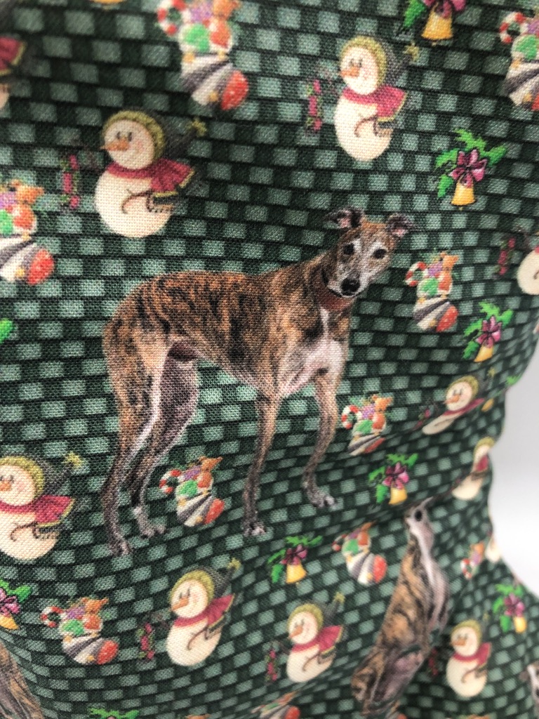 This Greyhound #2 Christmas Stocking is made with Greyhound-themed designer fabric and lined with soft anti-pill fleece. All Christmas stockings are handmade by me in my studio. Another product complimenting this Greyhound #2 Christmas stocking is the Greyhound #2 Tote Bag. If you would like, Click here to visit my Etsy site.