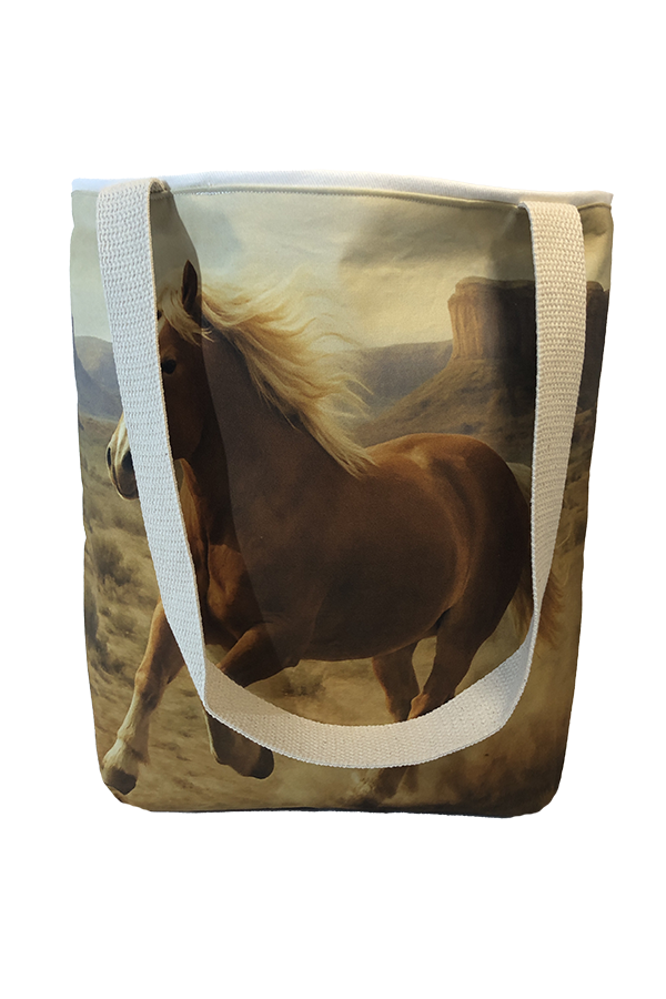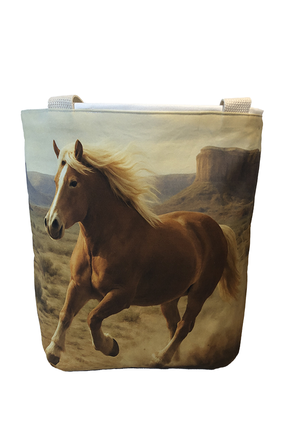 Introducing the epitome of equine elegance and artisan craftsmanship: the Handmade Designer Haflinger Galloping Tote Bag. Standing proud at 14 inches tall and stretching 16 inches wide, this exquisite accessory is a tribute to functionality and style. Crafted with meticulous attention to detail, it will become your wardrobe’s darling. At first glance, your eyes are immediately drawn to the captivating design gracing the tote’s exterior. Adorning the durable fabric are elegant horse graphics, each infused with personality and charm. Their stately demeanor brings a touch of whimsy to the bag, making it a conversation starter wherever you go.