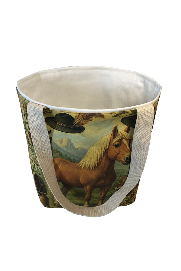 But beauty is not merely skin-deep. This Handmade Designer Haflinger Heritage Tote Bag boasts functionality as impressive as its aesthetics. The exterior fabric, carefully chosen for its durability and resilience, ensures that your belongings remain secure and protected during your travels. Meanwhile, the spacious interior, lined with 100 percent cotton white twill, provides a soft and luxurious sanctuary for your essentials. As your fingers trace the bag’s contours, you’ll appreciate the thoughtful details woven into its construction. The one-and-one-half-inch-wide natural cotton strap, meticulously stitched to perfection, offers both comfort and durability, effortlessly accommodating the weight of your belongings while adding a touch of rustic charm to the ensemble.