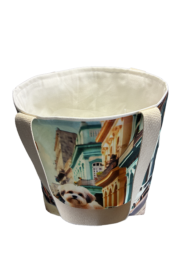 Introducing the epitome of canine elegance and artisan craftsmanship: the Handmade Designer Havanese Havana Street Tote Bag. Standing proud at 14 inches tall and stretching 16 inches wide, this exquisite accessory is a tribute to functionality and style. Crafted with meticulous attention to detail, it will become your wardrobe’s darling. At first glance, your eyes are immediately drawn to the captivating design gracing the tote’s exterior. Your pet is displayed in a beautiful scene with personality and charm. Their playful demeanor brings a touch of whimsy to the bag, making it a conversation starter wherever you go.